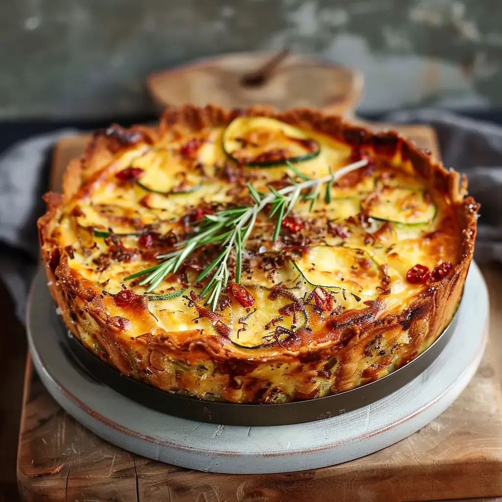 Une quiche aux légumes onctueuse, préparée avec de la farine de pois chiches pour une option sans gluten.